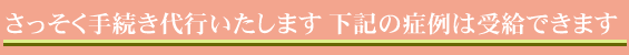| 複雑な手続き書類をみ てあきらめる前に、プロに 申請をおまかせください。 受給されるまで、綿密な 打ち合わせと書類作成を 責任を持って最後までや らせていただきます お客様とのお約束です。 |